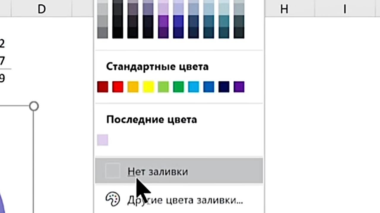 7. В разделе «Контур фигуры» выберите «Нет контура». Ваша фигура станет невидимой, но динамическая цифра в центре диаграммы останется и будет обновляться при изменении значения в ячейке D1.