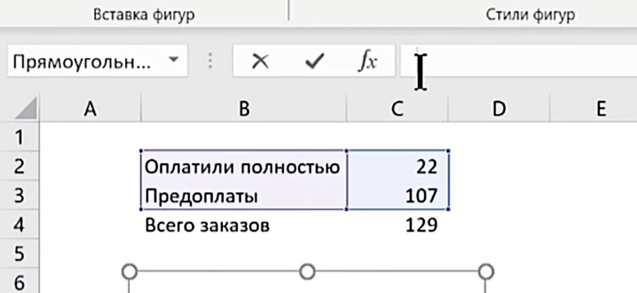 3. Важно: Не отпуская выделение фигуры, перейдите в строку формул (вверху листа, где обычно вводятся формулы).