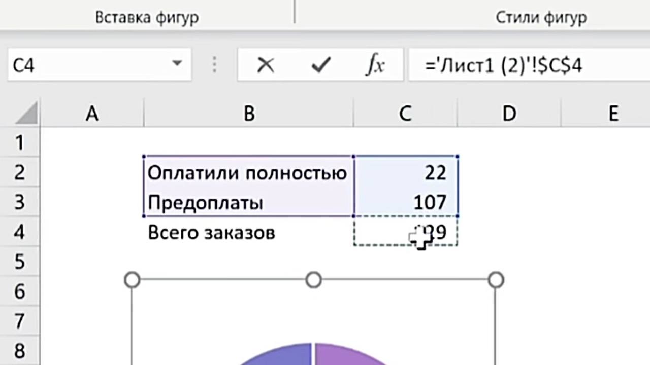 5. Теперь выделенная фигура будет отображать значение из ячейки D1. Кликните по фигуре правой кнопкой мыши и перейдите на вкладку «Стили фигур».