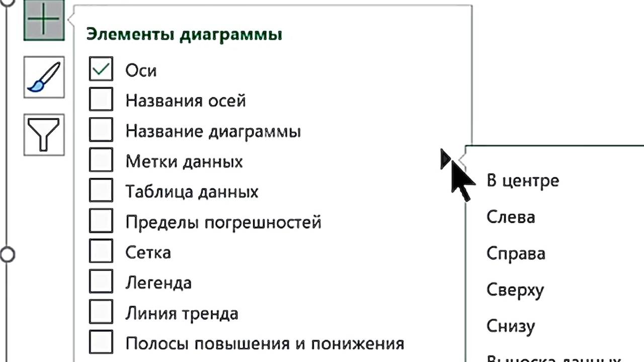 3. Теперь кликните правой кнопкой мыши по новому графику, нажмите знак «+» → «Метки данных» → «Сверху».