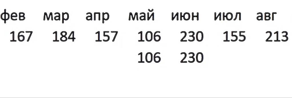- Под вашей основной таблицей с данными (например, «Месяц» и «Выручка») создайте дополнительную строку со значениями максимума и минимума (например, «Подписи»).