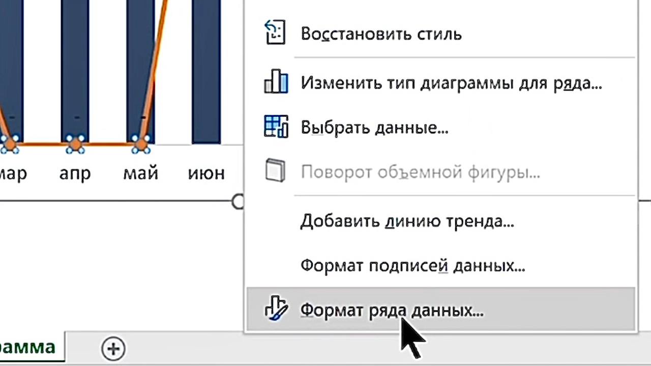 5. Вернитесь к форматированию самого ряда «Формат ряда данных».