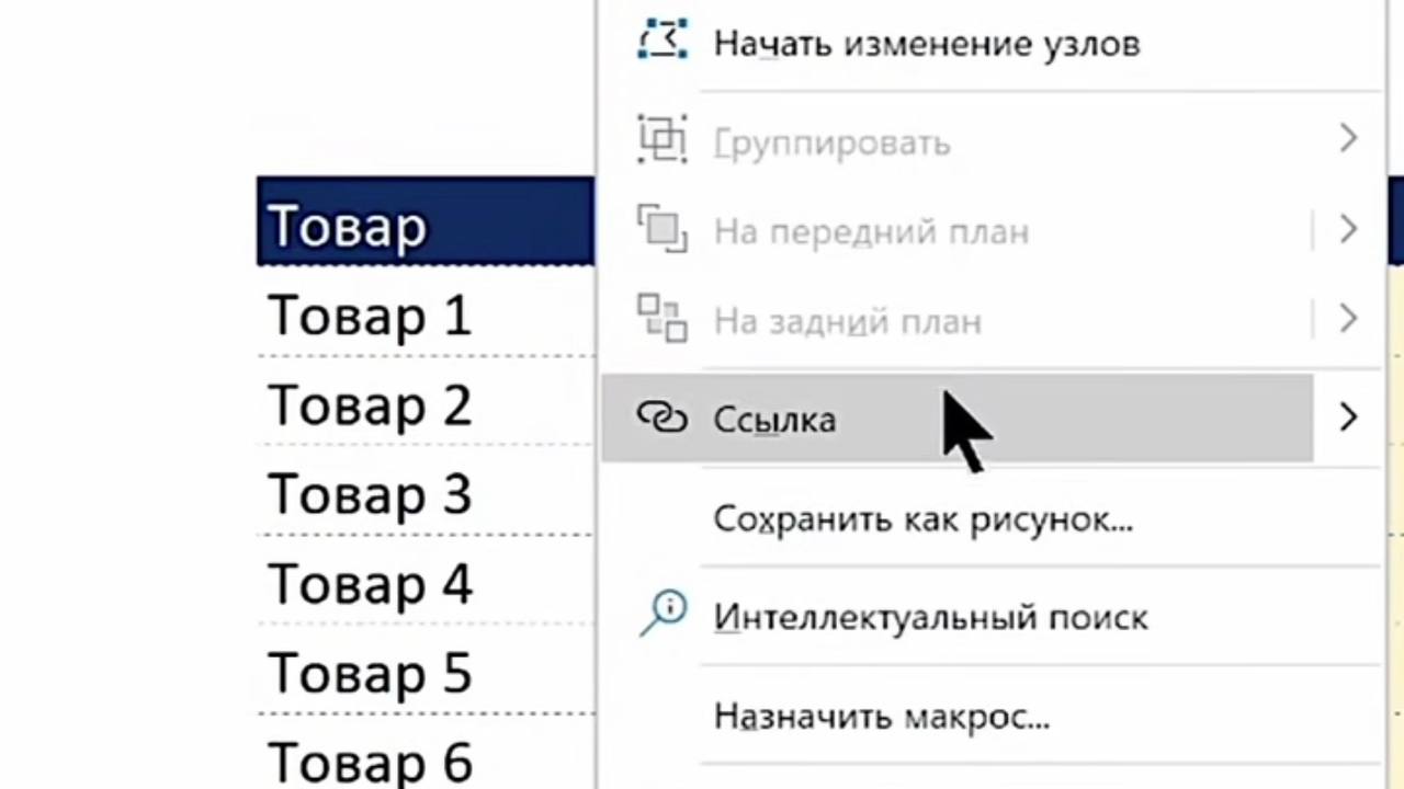 2. Добавьте ссылку: Кликните по фигуре правой кнопкой мыши и выберите «Ссылка».
