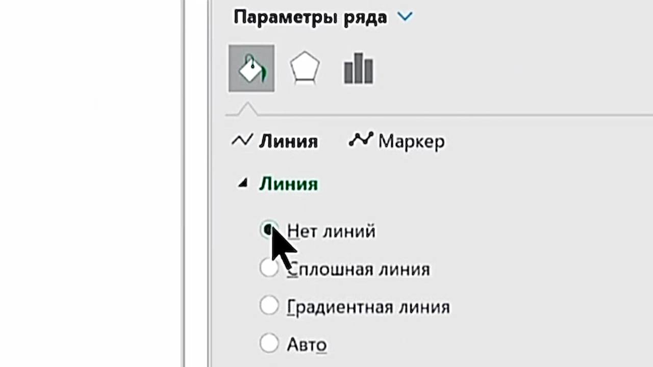 2. В панели справа в разделе «Линия» выберите «Нет линий». Линия исчезнет, останутся только маркеры.