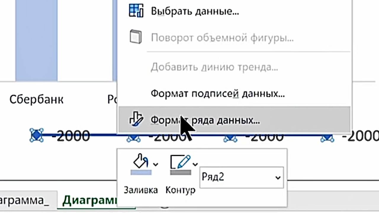 - Кликните правой кнопкой мыши по линии нового ряда (по самому графику) и выберите «Формат ряда данных».