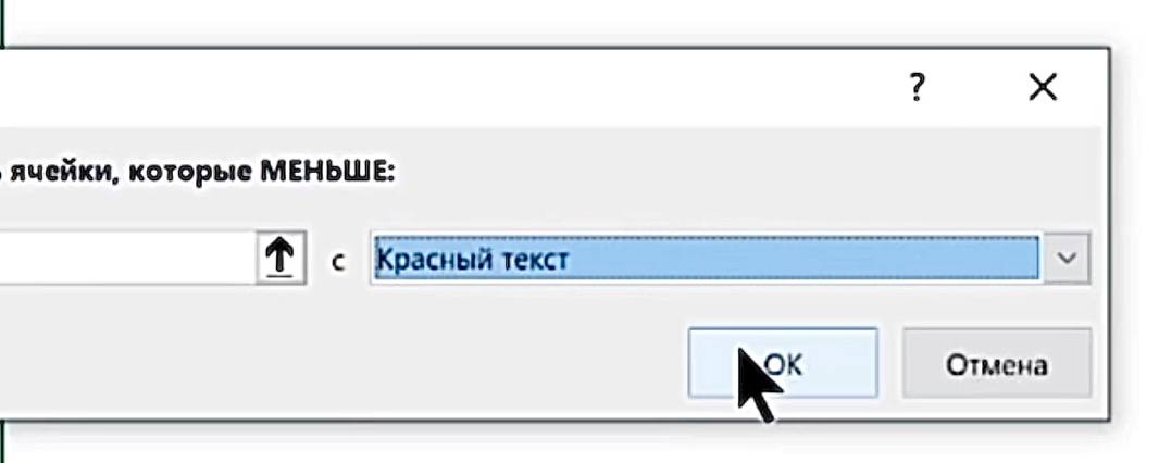 2. В правом поле выберите готовый вариант оформления «Красный текст». При желании можно выбрать другой вариант или создать собственный формат, нажав «Пользовательский формат».