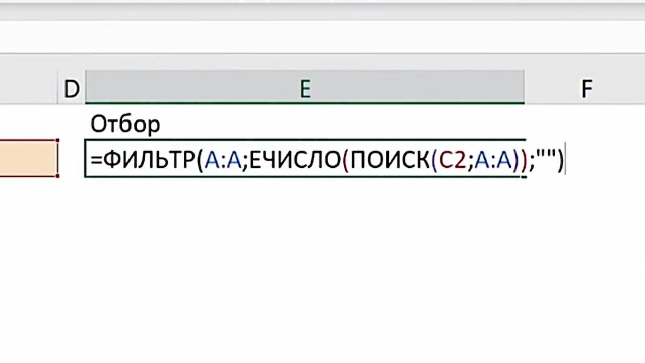 =ФИЛЬТР(A:A;ЕЧИСЛО(ПОИСК(B2; A:A));””)