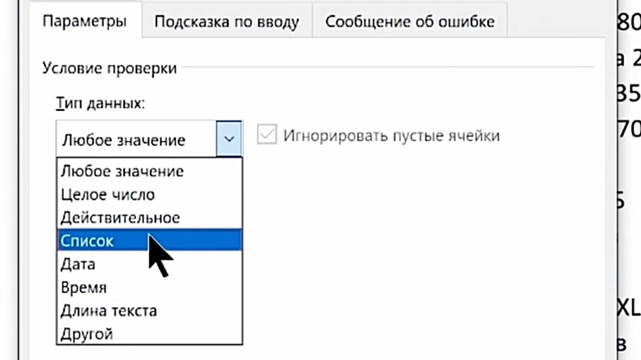 - B2 — ссылка на ячейку, где будет находиться поле для ввода (ваш будущий «умный» список).