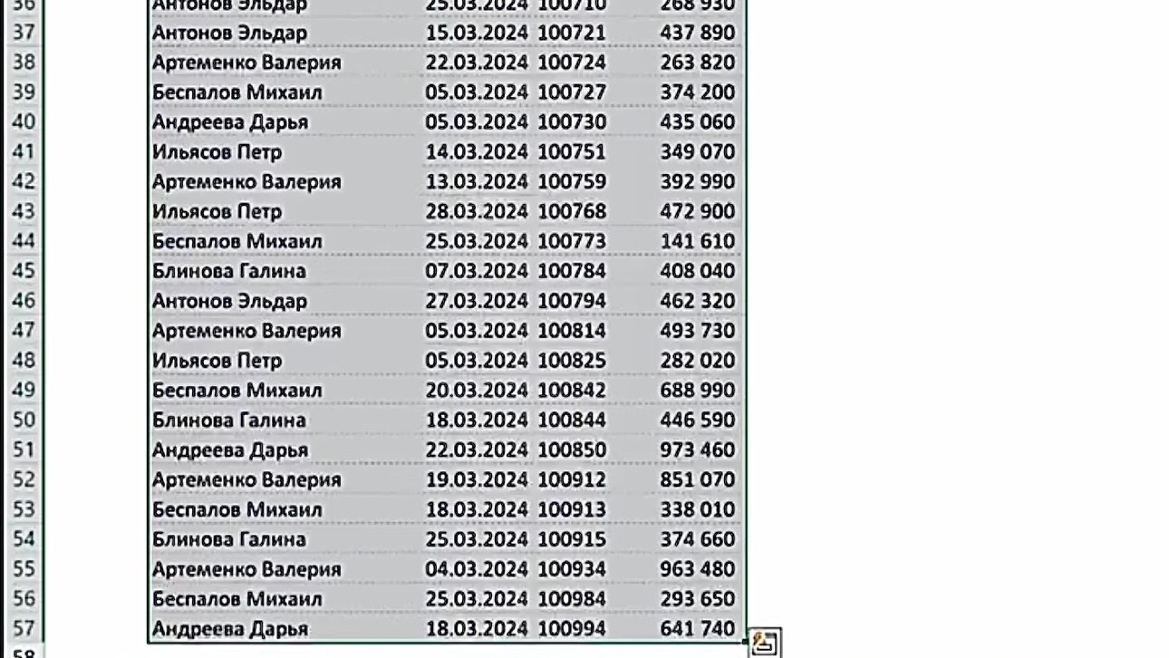 - Выделите все ячейки (кроме шапки таблицы).