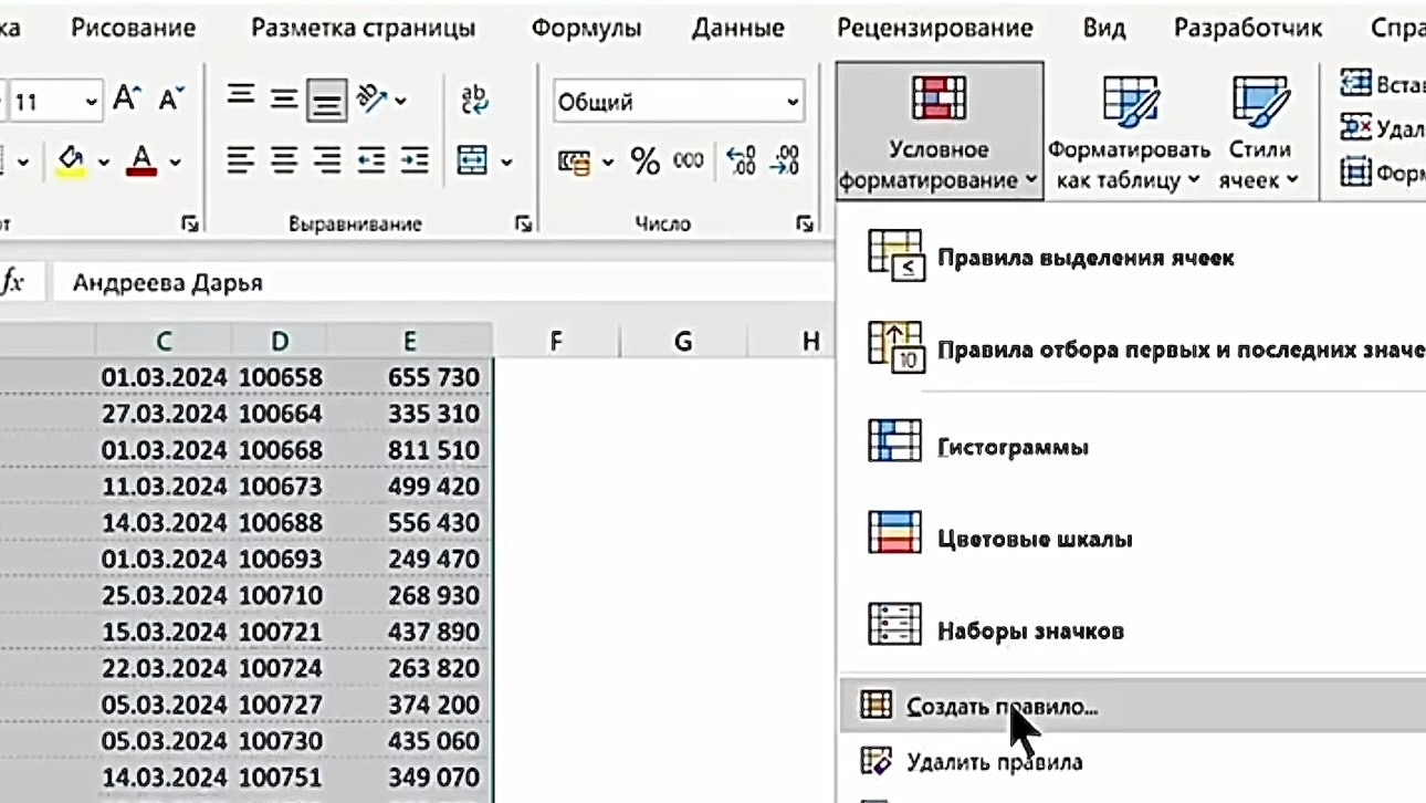 3. В группе «Стили» нажмите «Условное форматирование» → «Создать правило».
