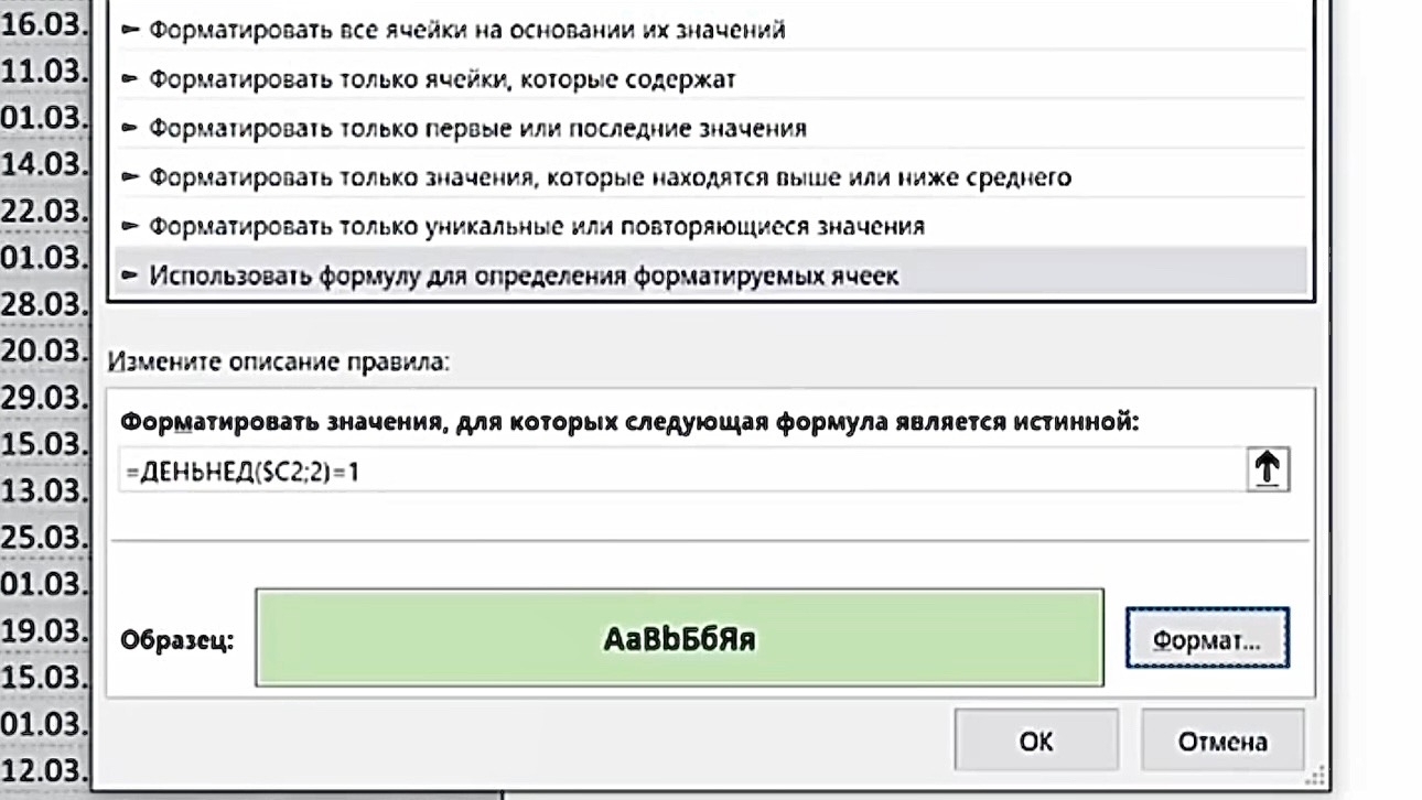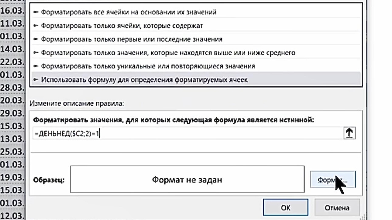 3. Нажмите «ОК» в окне выбора формата, затем ещё раз «ОК» для применения правила
