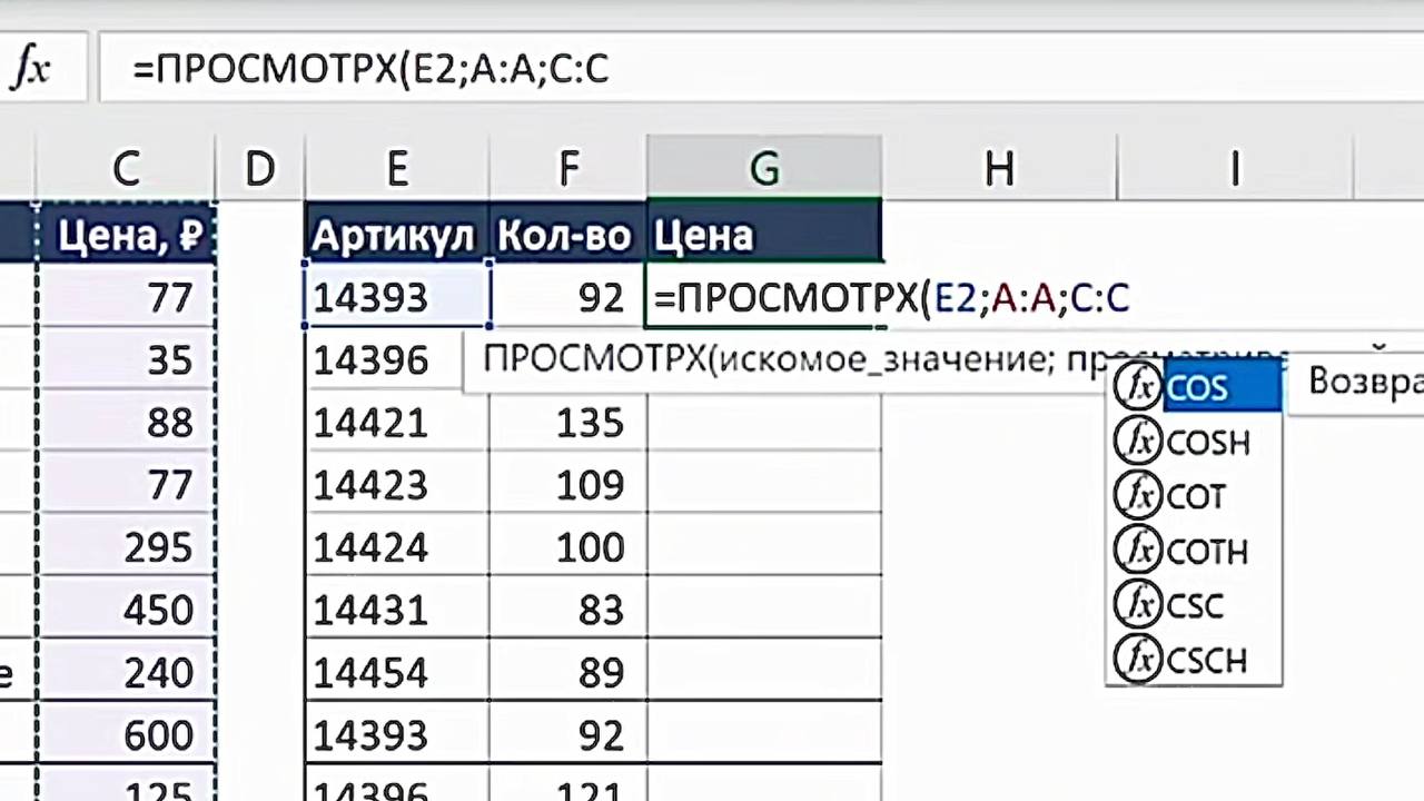 2. Начните вводить: =ПРОСМОТРХ(
