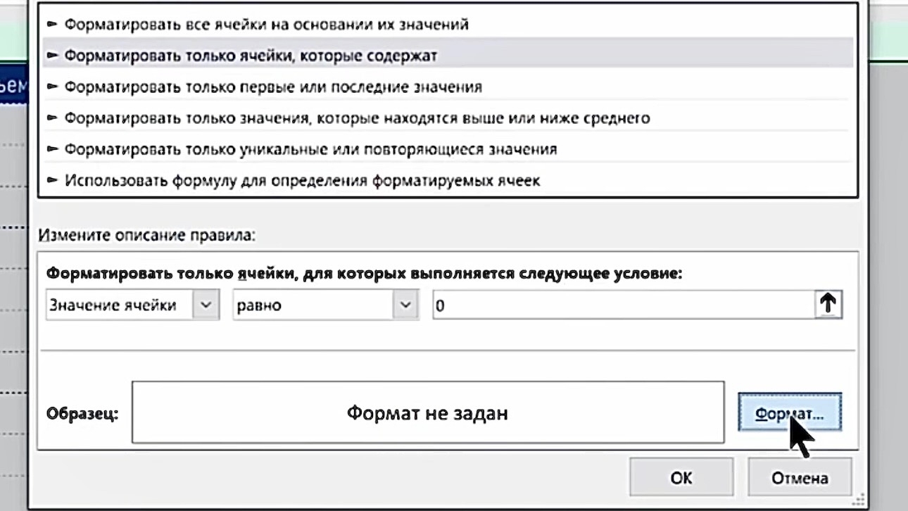 5. Нажмите «ОК» в окне выбора формата, затем ещё раз «ОК» для применения правила.