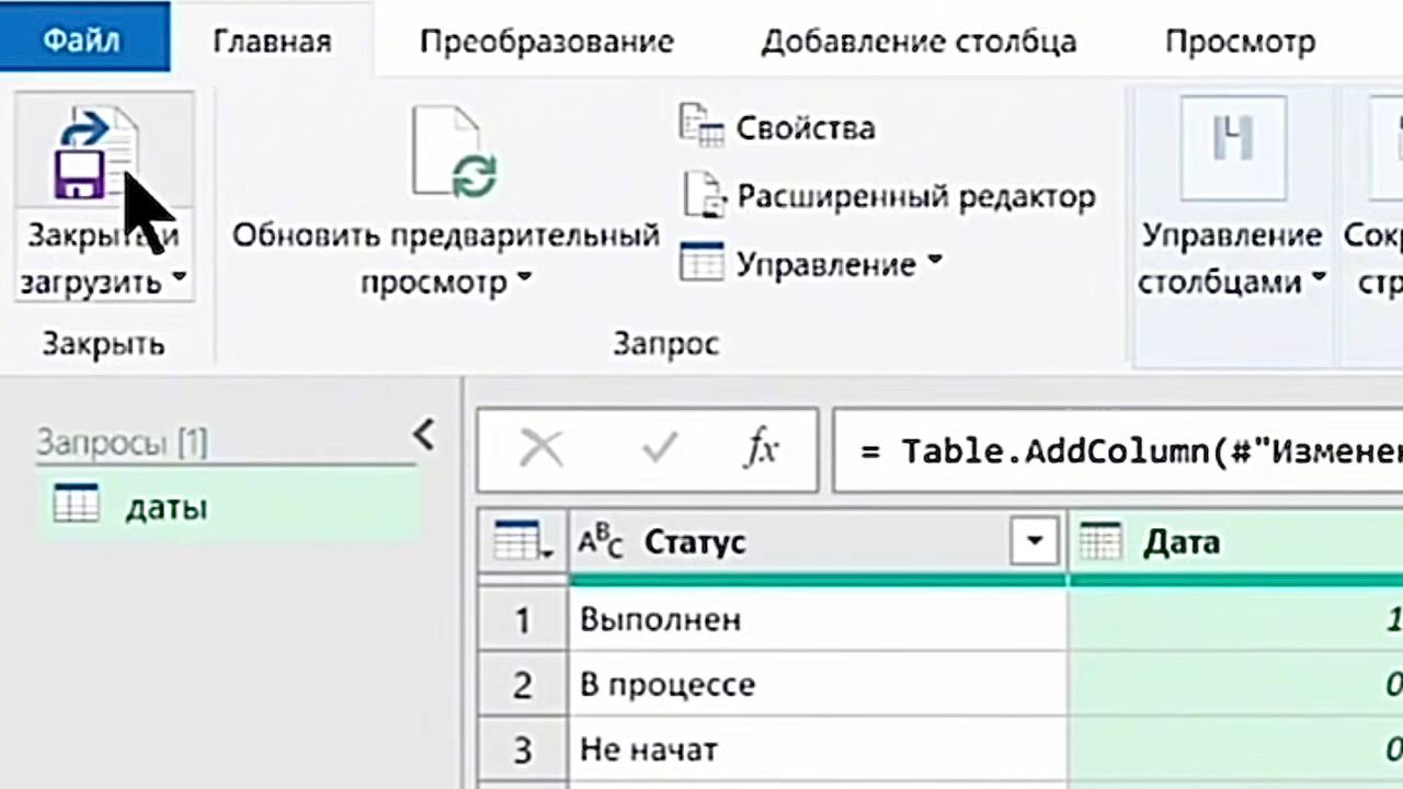 После добавления столбца нажмите кнопку «Закрыть и загрузить» на вкладке «Главная».